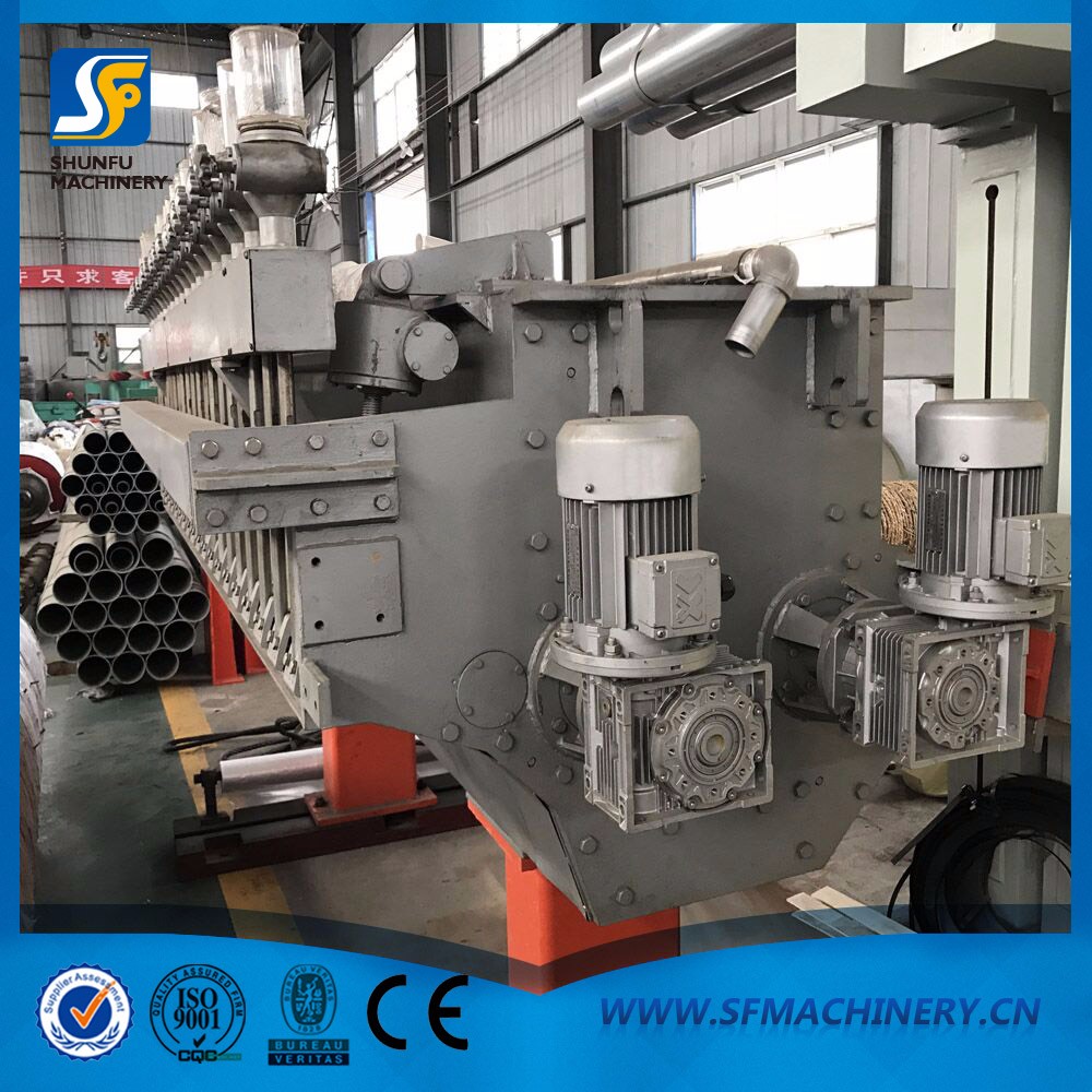 流漿箱的布漿器為方錐管總管進漿、臺階孔板布漿。勻整裝置為二根不同開孔率的勻漿輥。噴漿唇口采用關節式上唇板(分單/雙關節),唇緣配垂直小唇板,基上配有百分顯示、精密蝸輪箱調節小唇板微調裝置,上唇板最大開口>70~90㎜,方便清洗維護。上唇板調節采用手動蝸輪箱,平穩輕松。